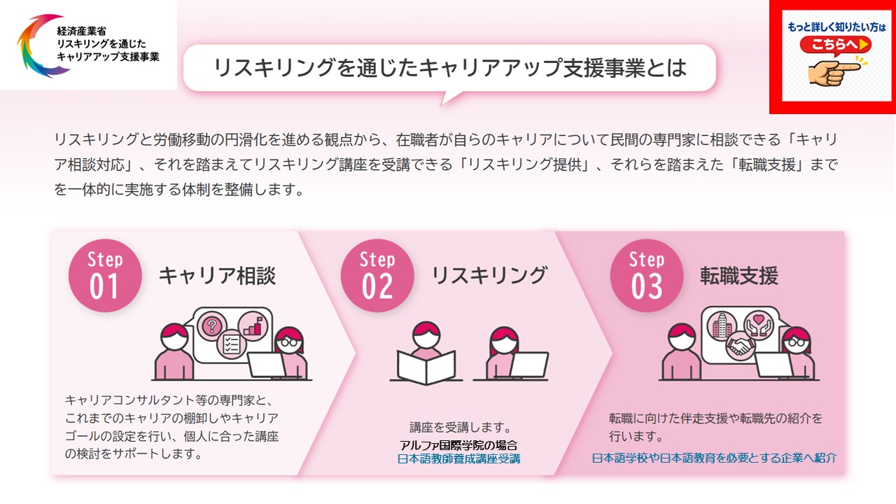 アルファ国際学院の日本語教師養成420時間講座がリスキリング制度を活用して学ぶことができるようになりました。