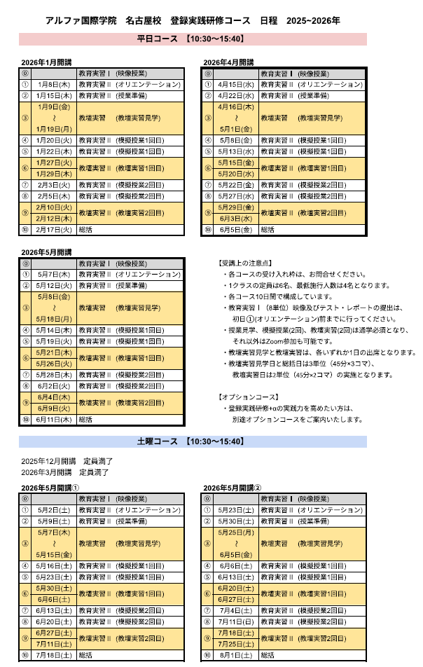 【名古屋校2026年実践研修日程のご案内】